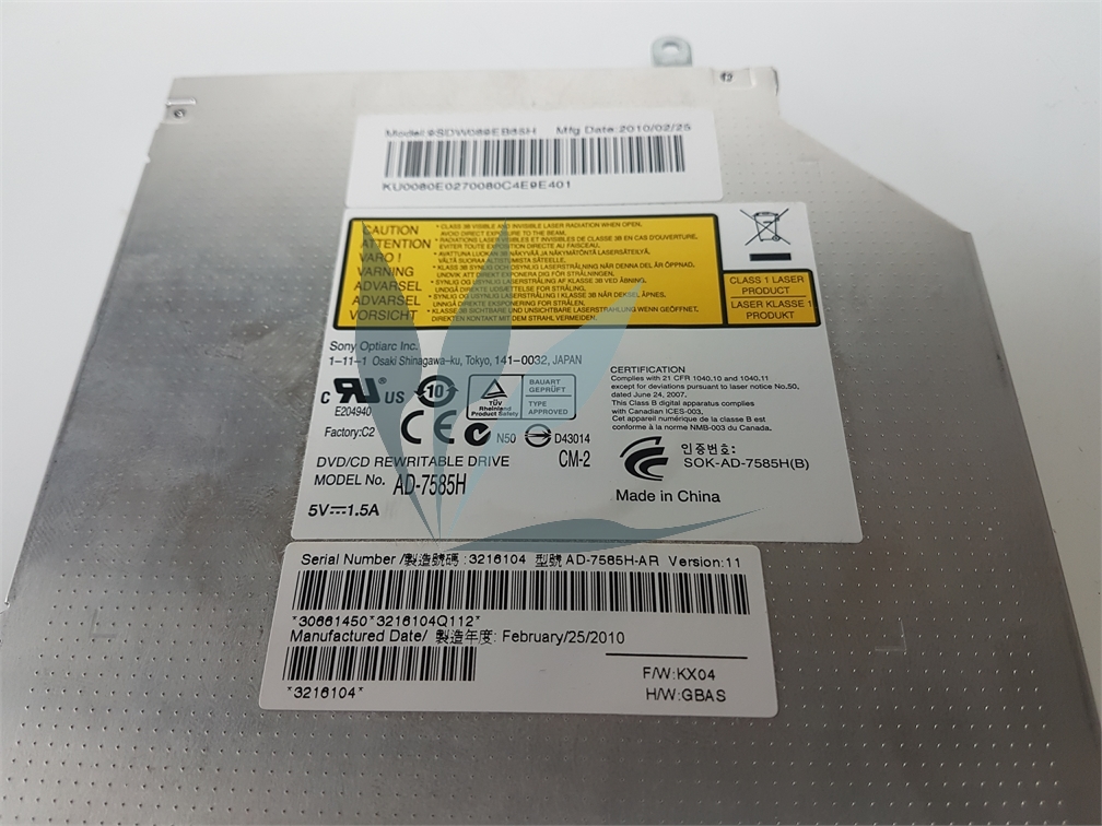 Lecteur graveur de CD/DVD avec façade et caddy pour Acer Aspire 7740G